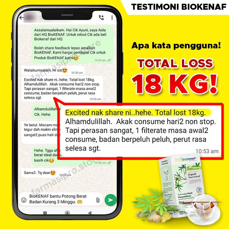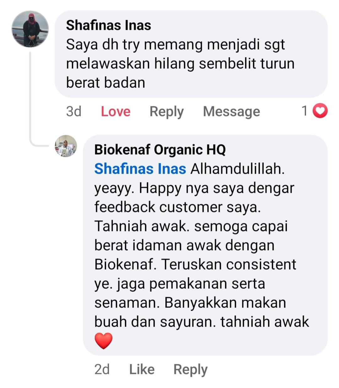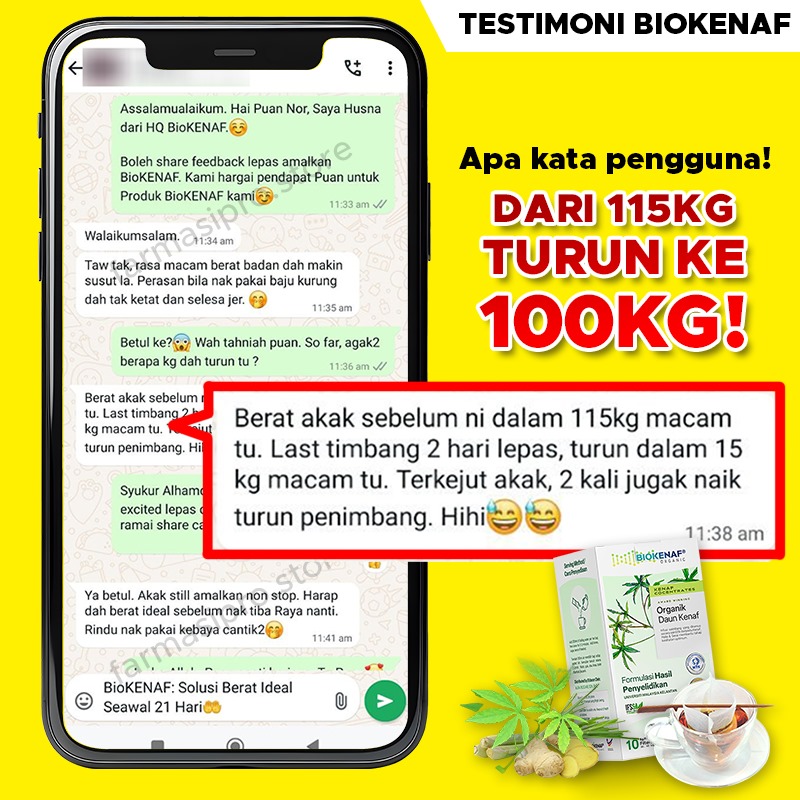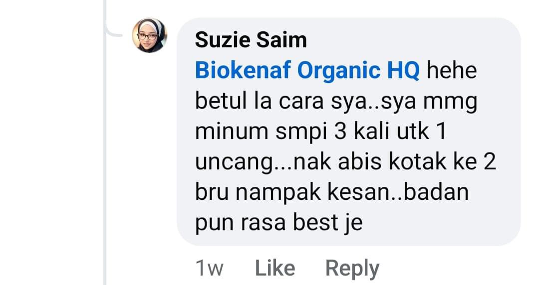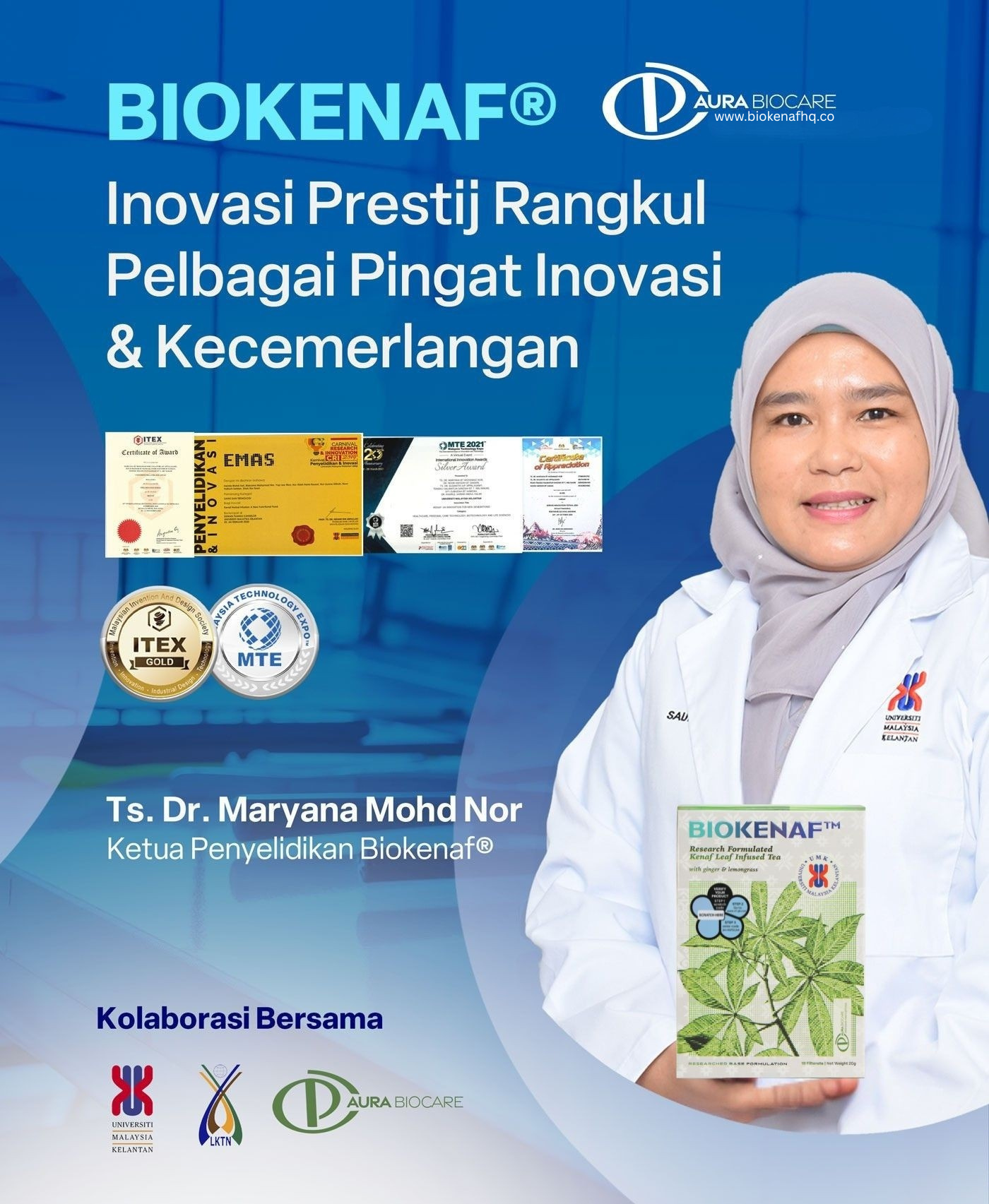 “Sebagai seorang saintis, saya perlu buktikan keberkesanan produk ini, bukan sahaja melalui kajian terperinci, dengan amalkan Biokenaf® saya dapat buktikan penurunan berat & penghapusan kolesterol jahat secara natural.” – Ts. Dr. Maryana Mohd Nor