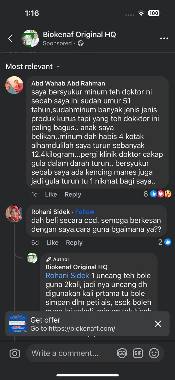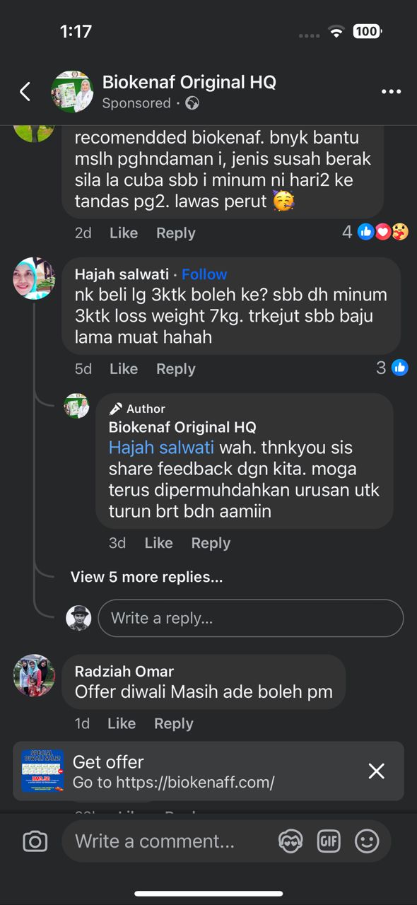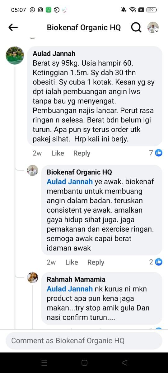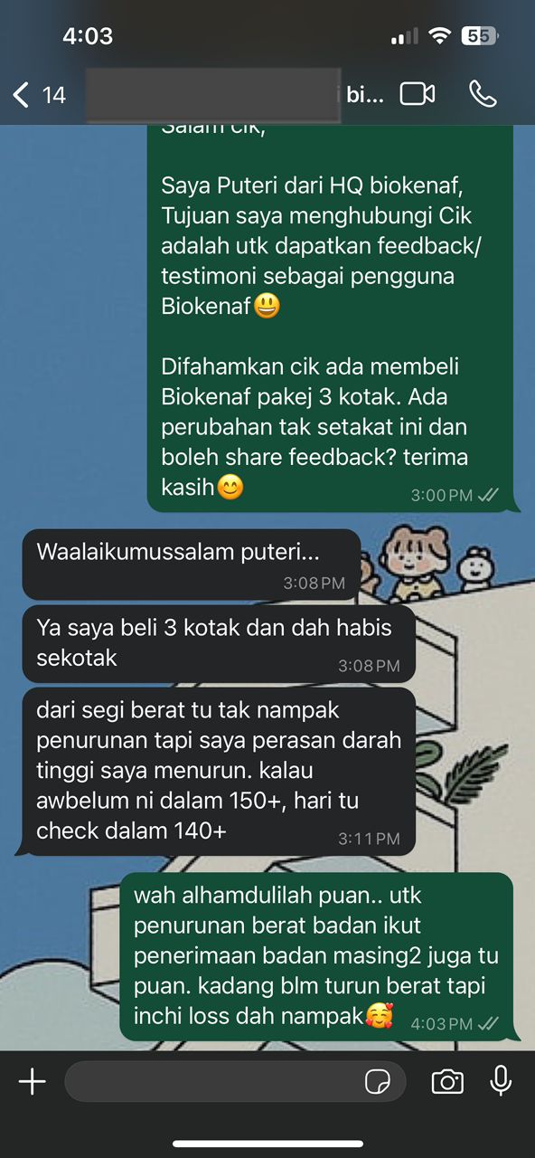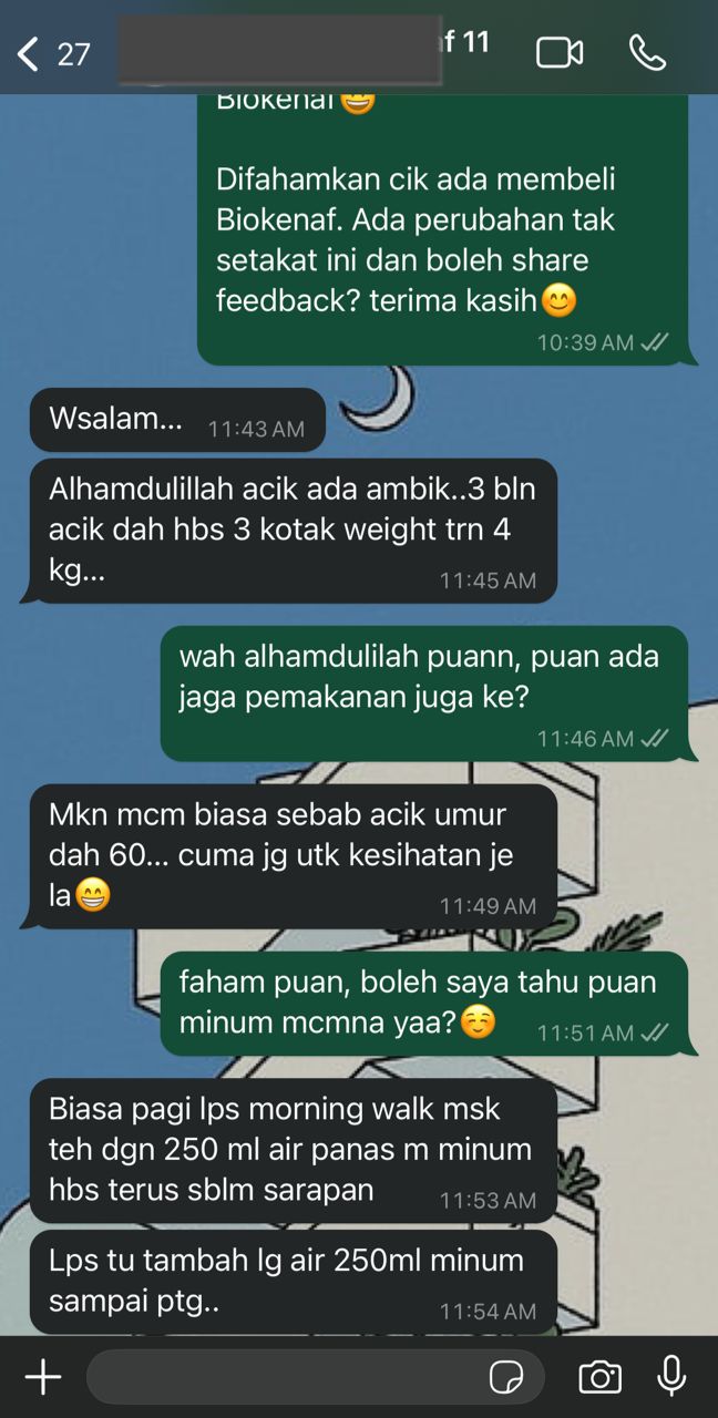 “Sebagai seorang saintis, saya perlu buktikan keberkesanan produk ini, bukan sahaja melalui kajian terperinci, dengan amalkan Biokenaf® saya dapat buktikan penurunan berat & penghapusan kolesterol jahat secara natural.” – Ts. Dr. Maryana Mohd Nor