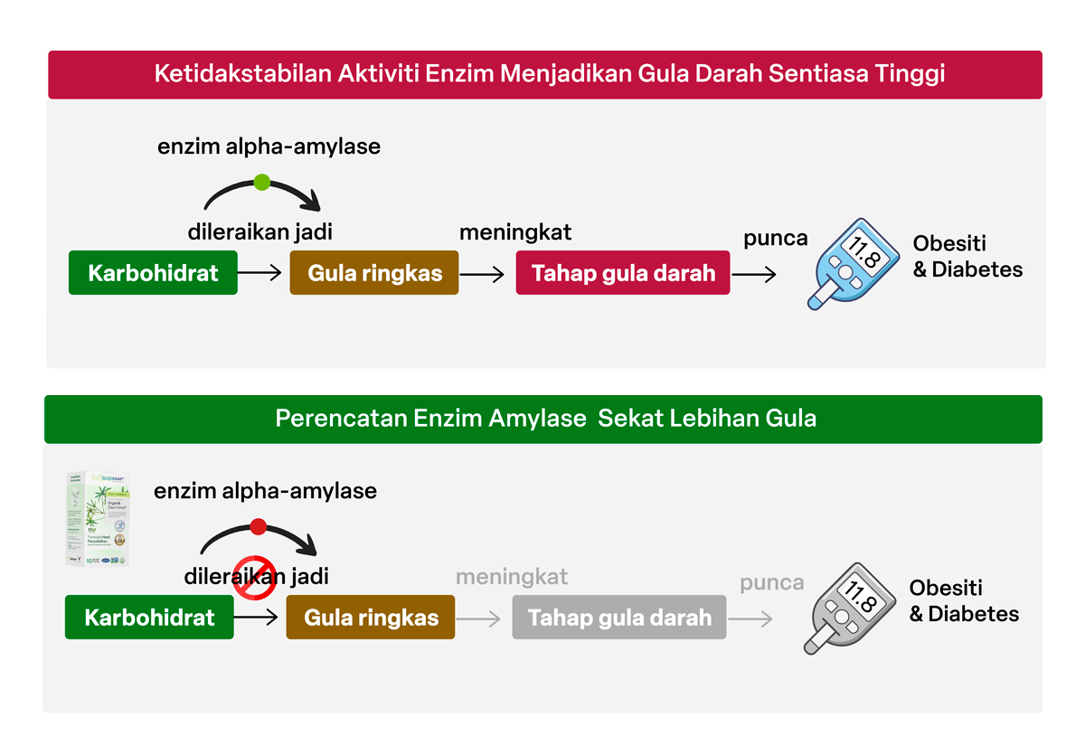 alpha-amylase adalah enzim berfungsi meleraikan kanji & karbohidrat kepada gula ringkas.