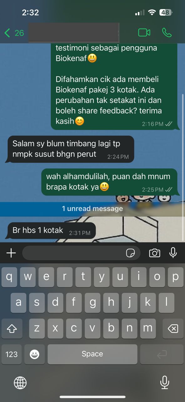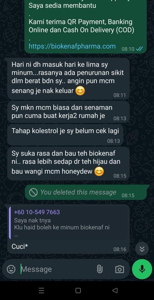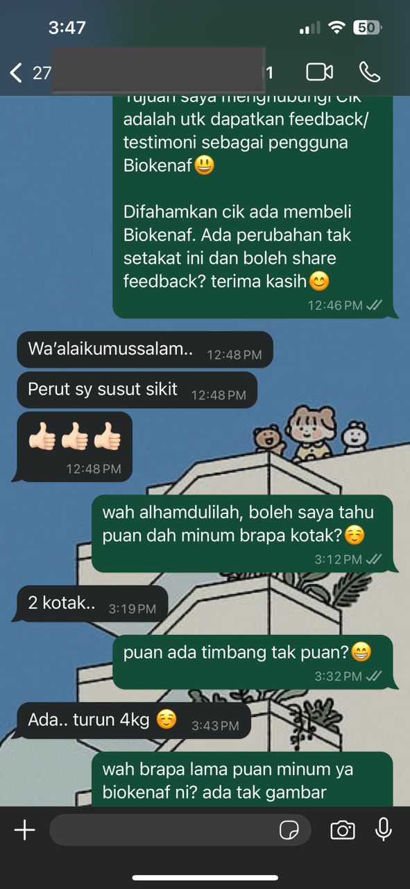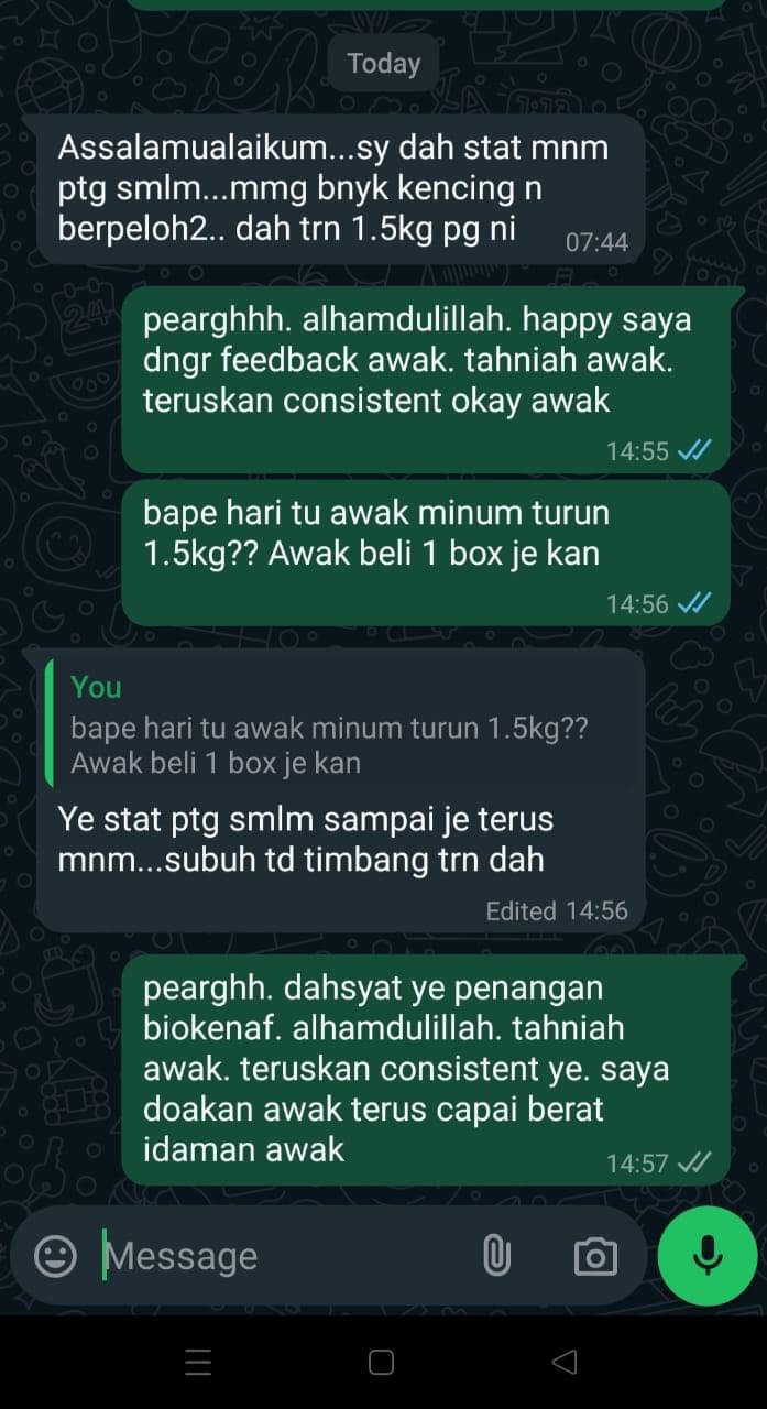 “Berat saya turun 8kg Selepas Amal 3 Kotak, hairan saya, kat mana hilang lemak sebab takde cirit birit, tapi yang saya perasan selera makan saya berubah, buang air besar lawas, paling best! Gout saya eh tibe tibe hilang!” – En. Mustam.